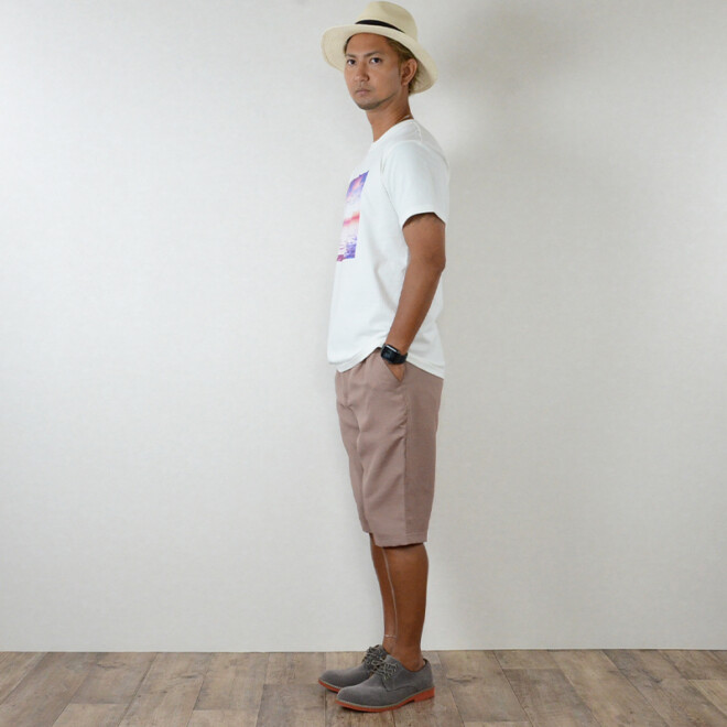 よれにくい厚めの生地に、ドライでざっくりとした風合いの素材感で通気性のある一枚。